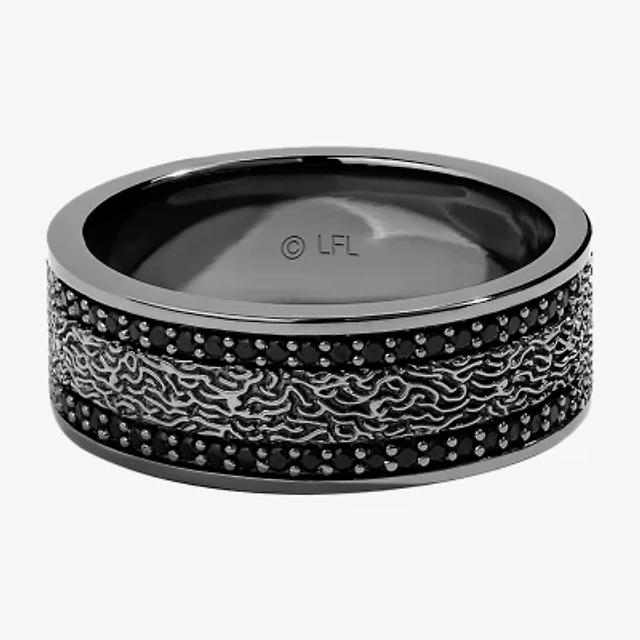 Midnight Black Mens 6.5MM Diamond Accent Natural 10K Gold Wedding Band