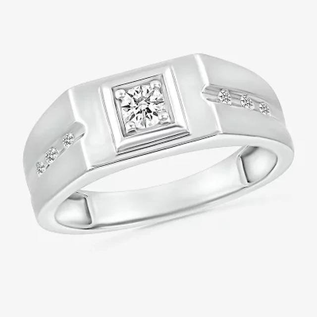 Mens Diamond Accent Lab Created Blue Sapphire 10K White Gold Fashion Ring