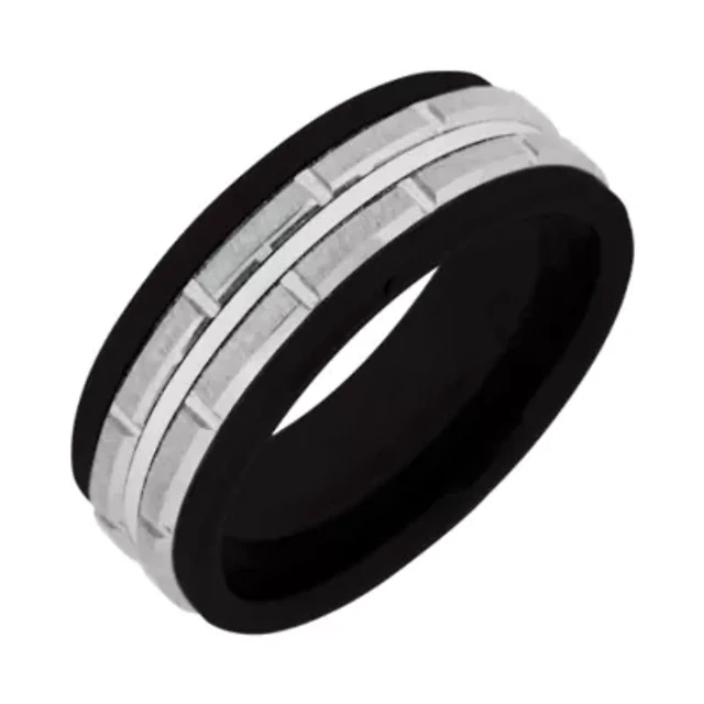 Mens 8mm Comfort Fit Chain Inlay Tungsten Wedding Band