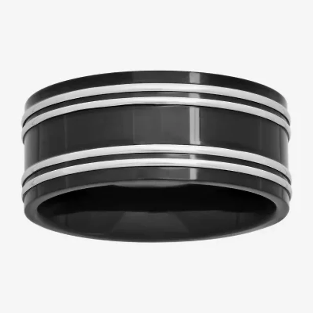 Mens 10mm Two-Tone Stainless Steel Wedding Band