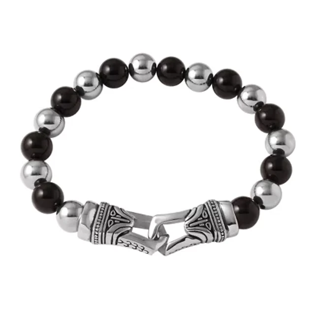 Mens Black Ion-Plated Stainless Steel and Carbon Fiber Link Bracelet