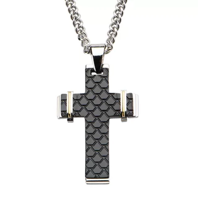 Mens Two-Tone Stainless Steel Crucifix Pendant Necklace