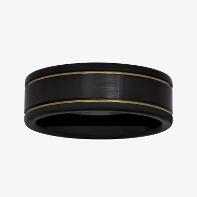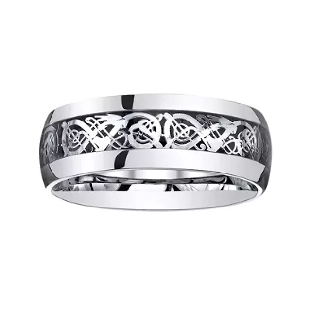 Personalized Mens Filigree Inlay Stainless Steel Wedding Band