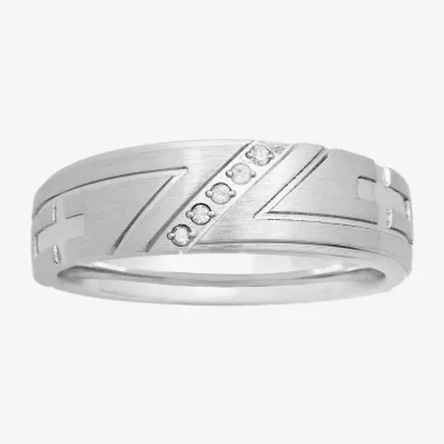 Mens Personalized 6mm Comfort Fit Sterling Silver Cross Wedding Band