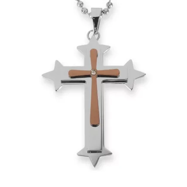 Mens Stainless Steel Cross Pendant Necklace