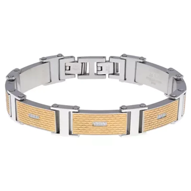 Steeltime Mens 18K Gold Over Stainless Steel Solid Curb Chain Bracelet