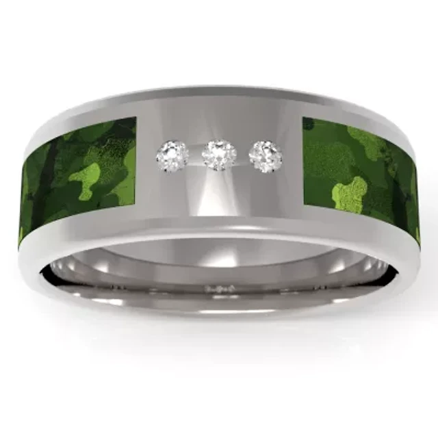 Green Camo Mens 7MM 1/10 CT. T.W. Natural White Diamond Stainless Steel Wedding Band