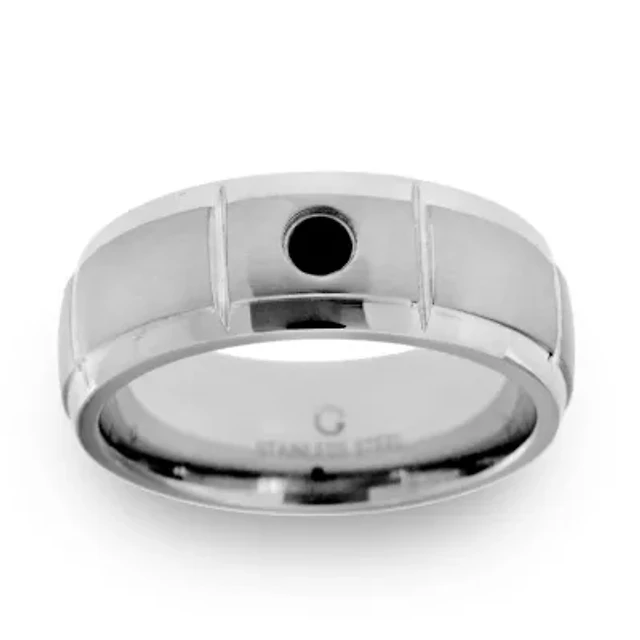 Mens 8MM 1/10 CT. T.W. Natural Black Diamond Stainless Steel Wedding Band