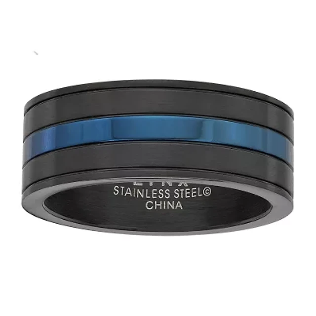 Mens 8MM Diamond Accent Natural Black Diamond Stainless Steel Wedding Band