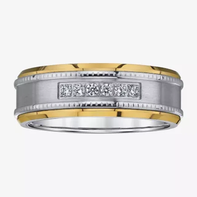 Now + Forever Men's Diamond Diagonal Grooved Wedding Band 1/4 ct tw 10K Yellow Gold