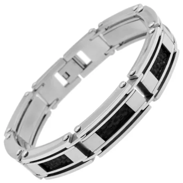 Mens 8 1/2 Inch Stainless Steel & Black Tungsten Link Bracelet