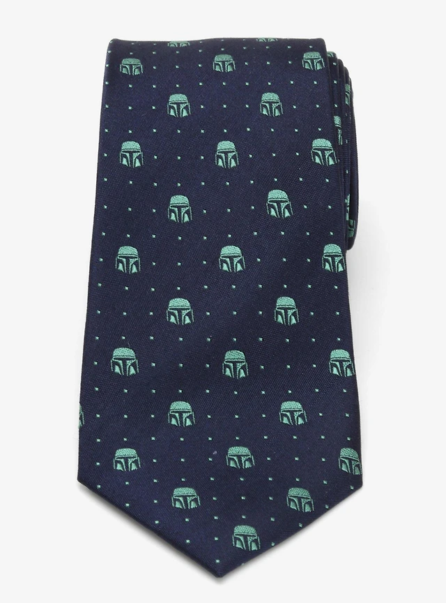 Star Wars Mandalorian Helmet Dotted Navy Tie