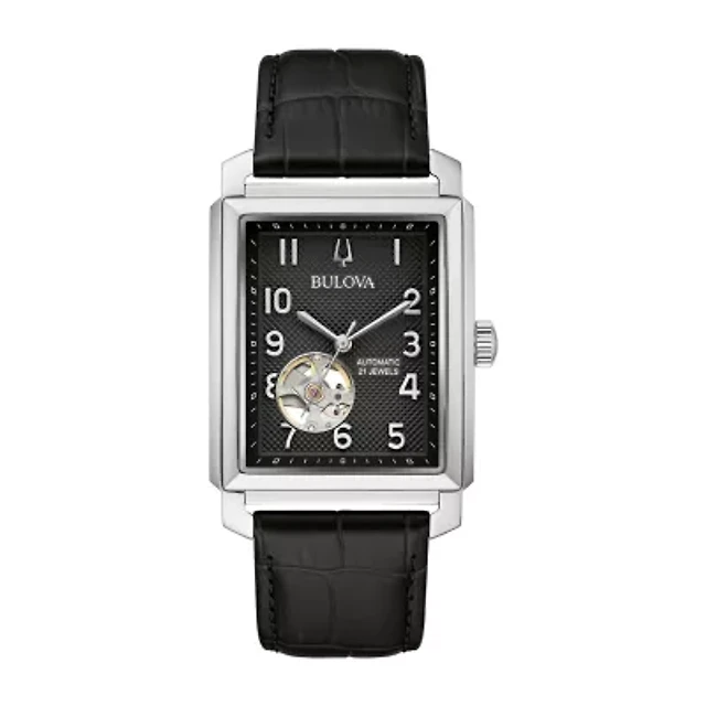 Bulova Classic Mens Automatic Black Leather Strap Watch 96a269