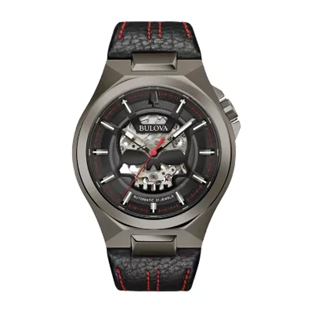 Bulova Aerojet Mens Automatic Black Leather Strap Watch 96b374