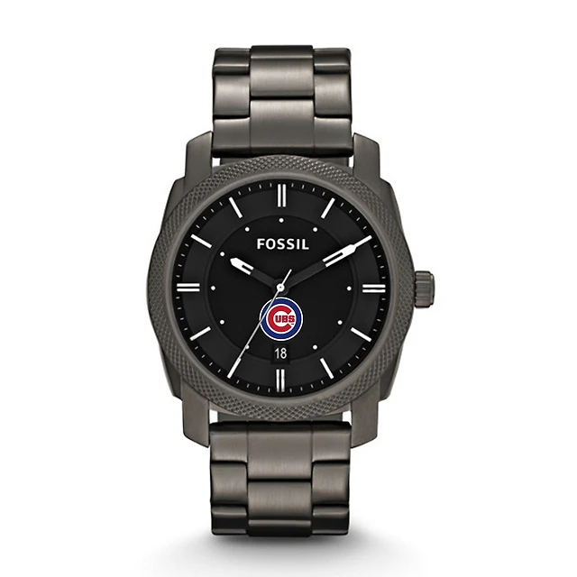 Men's Fossil Gray Chicago Cubs Machine Smoke Stainless Steel Watch