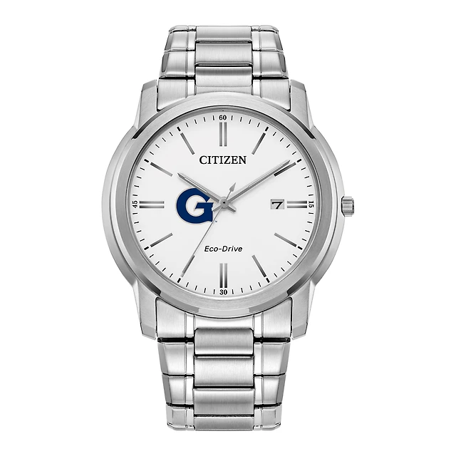 Men's Citizen Watch Silver Georgetown Hoyas Eco-Drive White Dial Stainless Steel Watch