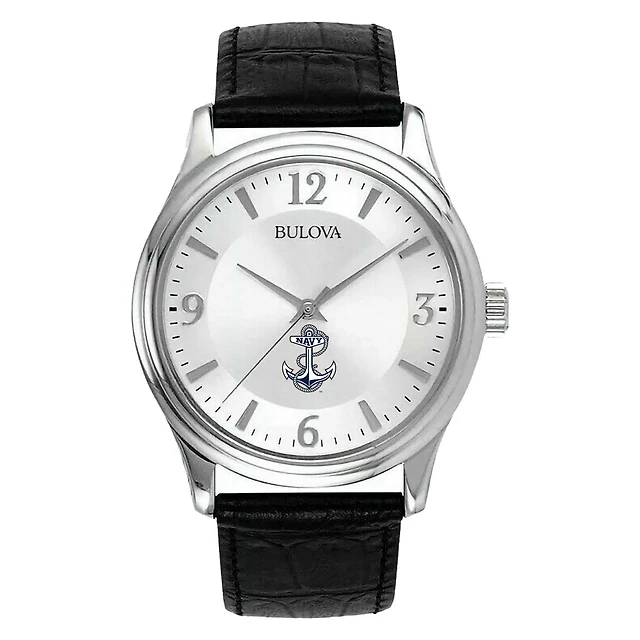 Men's Gold/Black Navy Midshipmen Stainless Steel Watch with Leather Band