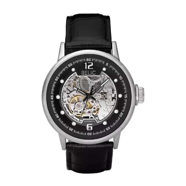 Relic By Fossil Mens Automatic Black Leather Strap Watch Zr77224