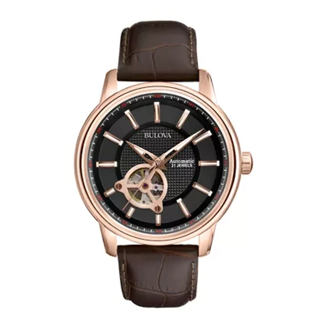 Claiborne® Mens Black and Silver-Tone Croc-Pattern Leather Watch