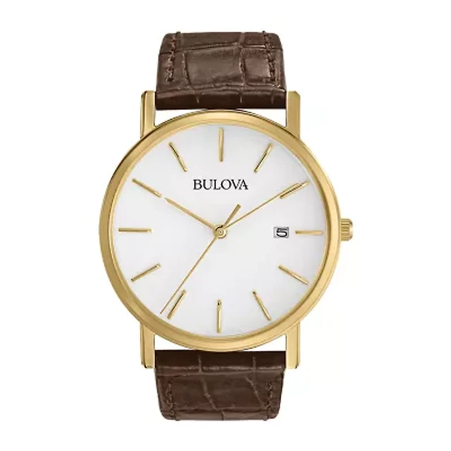 Claiborne® Mens Black and Gold-Tone Coin Edge Leather Watch