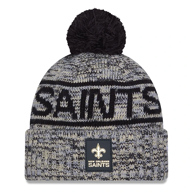 Men's New Era Black New Orleans Saints 2025 Sideline Cold Weather Cuffed Knit Hat with Pom