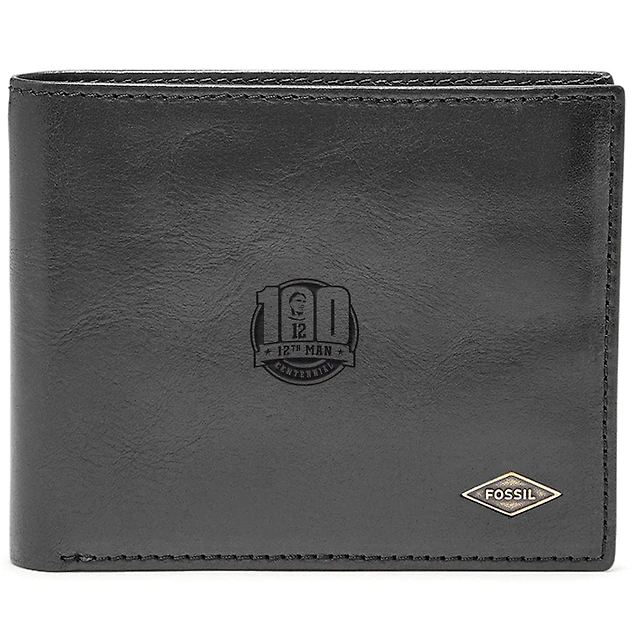 Fossil Black Texas A&M Aggies 12th Man Centennial Leather Ryan RFID Flip ID Bifold Wallet