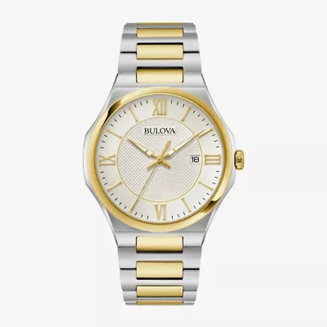 Bulova Mens Chronograph Diamond Accent Two Tone Stainless Steel Bracelet Watch 98a301