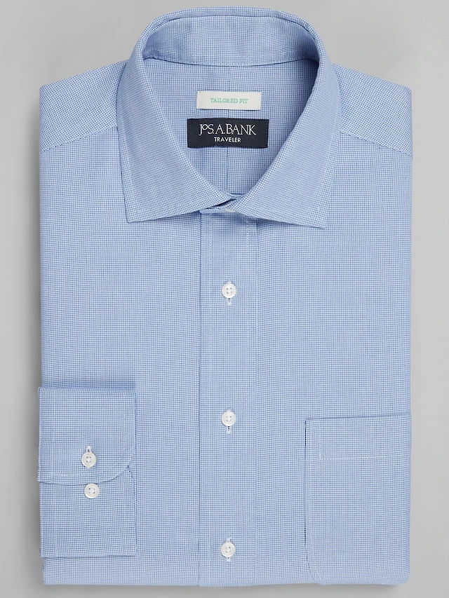 Men's Traveler® Collection Tailored Fit Spread Collar Tattersall Dress Shirt at Jos. A. Bank, Blue
