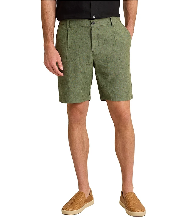 Roundtree & Yorke Luxury Linen Flat Front 9#double; Solid Shorts