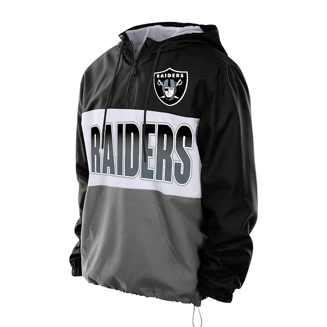 Las Vegas Raiders Black Ripstop Quarter-Zip New Era Hooded Windbreaker