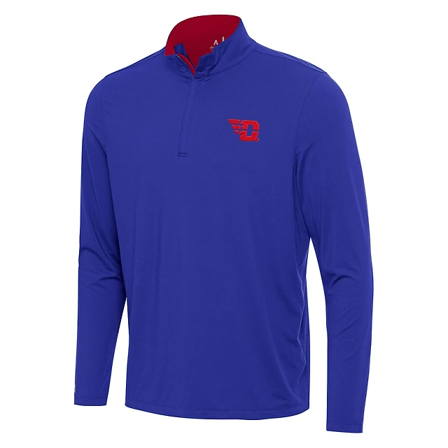 Men's Antigua Blue/Red Dayton Flyers Content Quarter-Zip Pullover Top