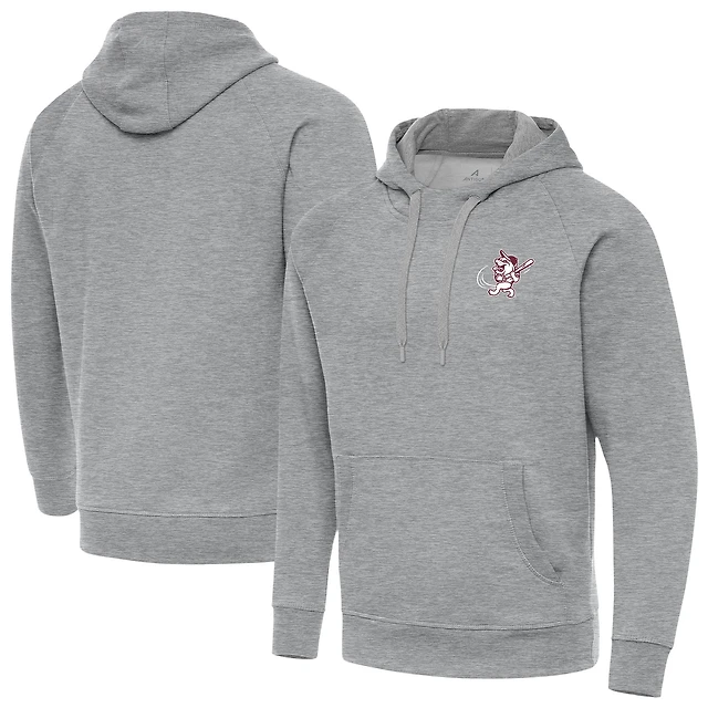 Men's Antigua Heather Gray Mississippi State Bulldogs Victory Swinging Bully Pullover Hoodie