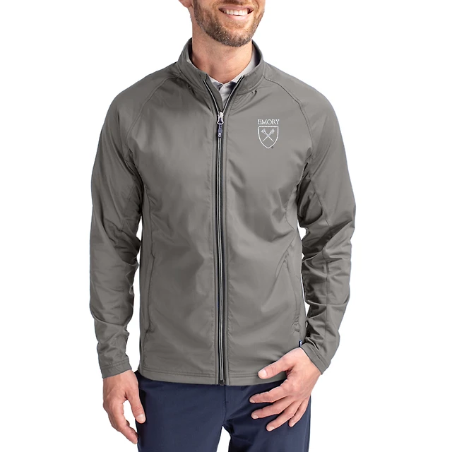 Men's Cutter & Buck Gray Emory Eagles Primary Logo Adapt Eco Knit Raglan Full-Zip Jacket