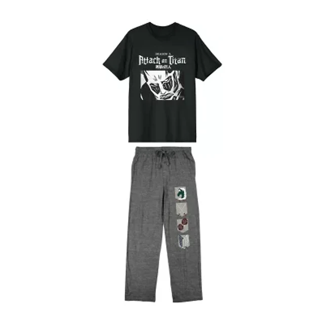 Attack On Titan Mens Crew Neck Short Sleeve 2-pc. Pajama Sets