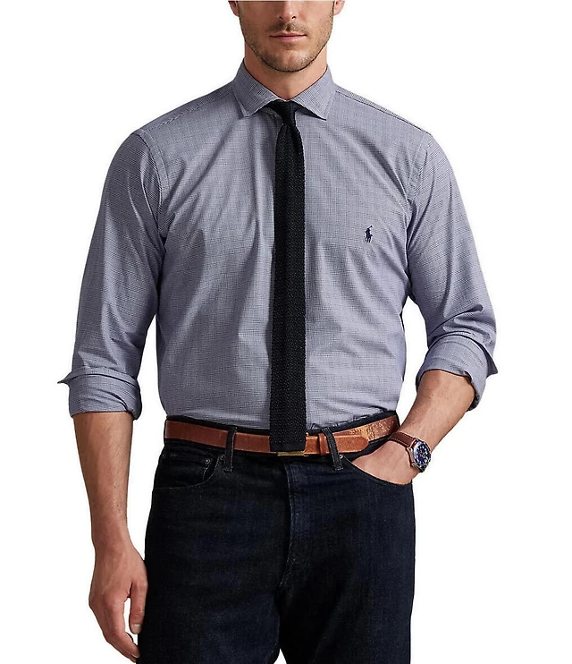 Gold Label Roundtree & Yorke Big & Tall Full Fit Non-Iron Point Collar Plaid Twill Dress Shirt