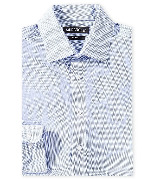 Murano Slim Fit Herringbone Warp-Knit Long Sleeve Dress Shirt