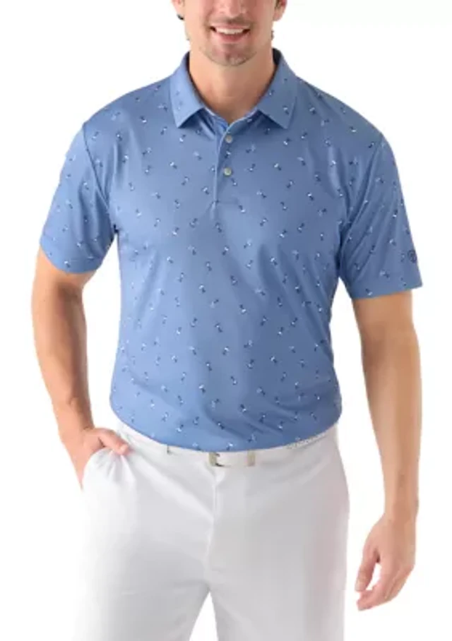 All-Over Golf Confetti Print Short Sleeve Polo Shirt