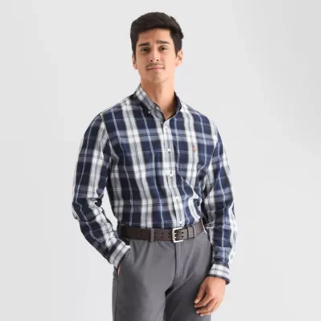 U.S. Polo Assn. Stretch Poplin Mens Long Sleeve Classic Fit Fabric Embroidered Button-Down Shirt