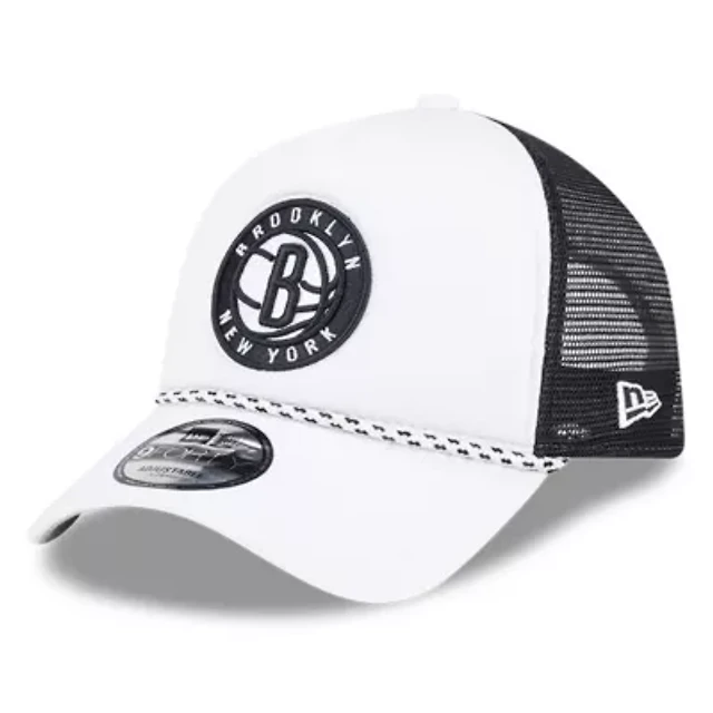 NBA White/Black Brooklyn Nets Court Sport Foam A-Frame 9FORTY Adjustable Trucker Hat