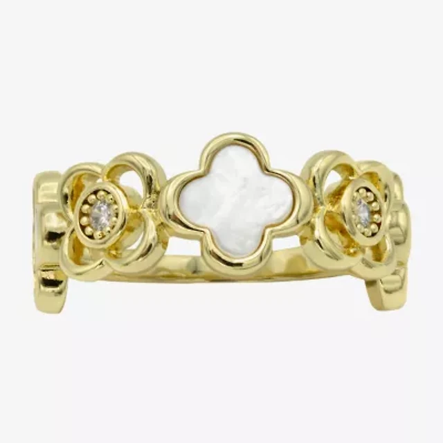 Silver Plated White Mother of Pearl Clover Station Bracelet