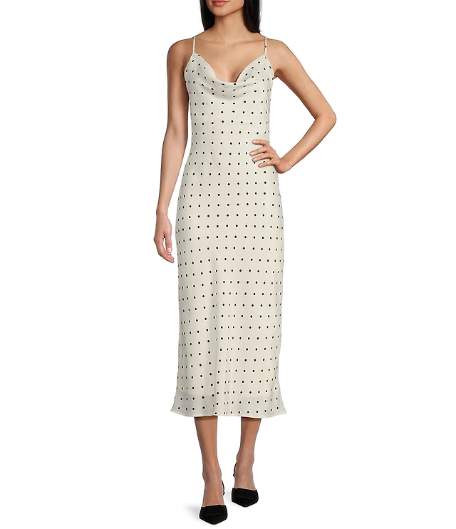 Evolutionary Sleeveless Cowl Neck Printed Polka Slip Dress