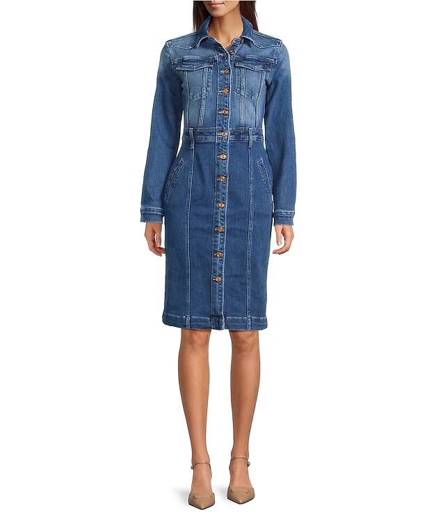 Adelyn Rae Jayne Denim Crew Neck Long Sleeve Sheath Midi Dress