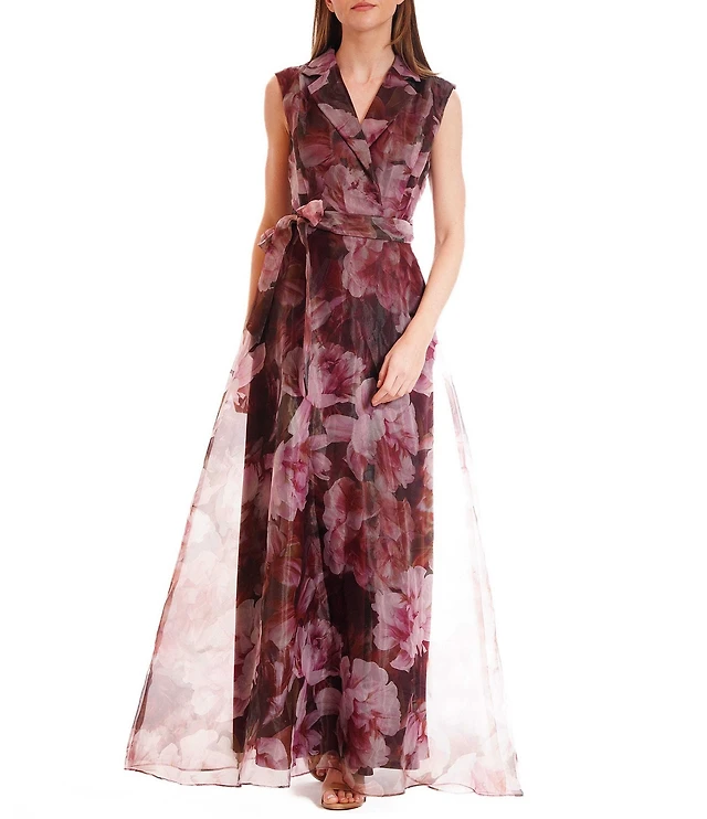 Julia Jordan Floral Printed Sleeveless Self Tie Sash Shirt Dress