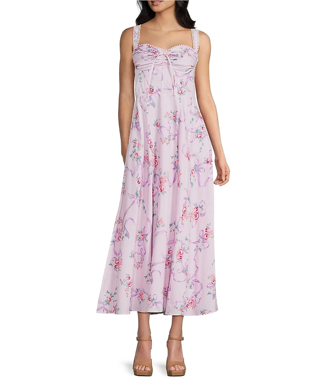 Line and Dot Whitney Floral Print Sweetheart Neckline Sleeveless Drop Waist Maxi Dress