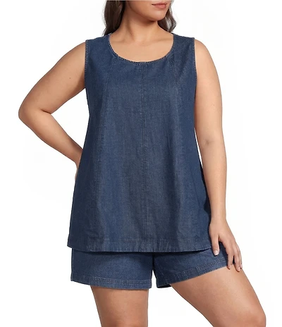 A.Ren Cosima Floral Print Crew Neck Sleeveless Asymmetrical Button-Down Coordinating Linen Blend Top