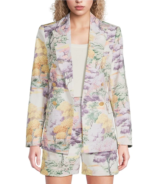 Double Breasted Contrast Button Cropped Blazer