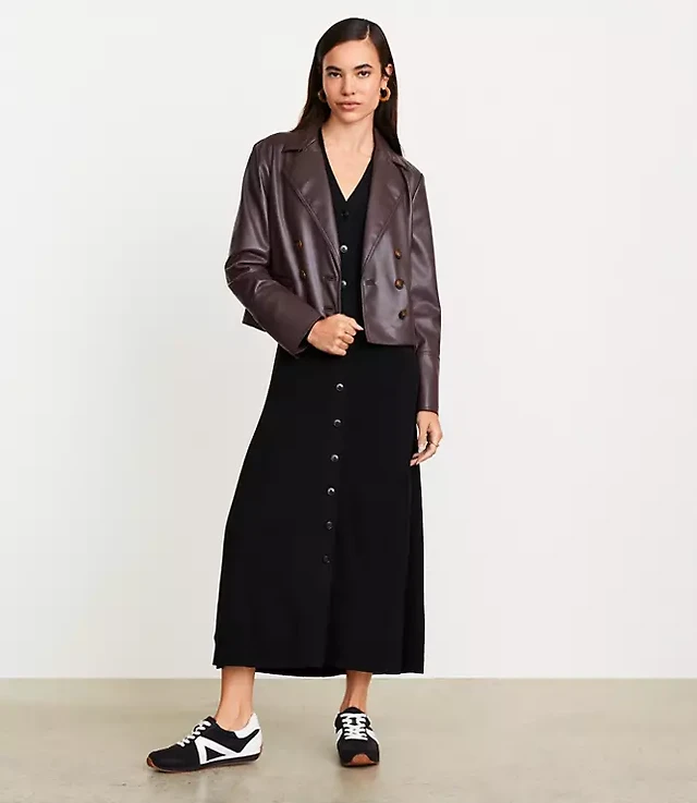 Tall LOFT Versa Faux Leather Cropped Double Breasted Blazer