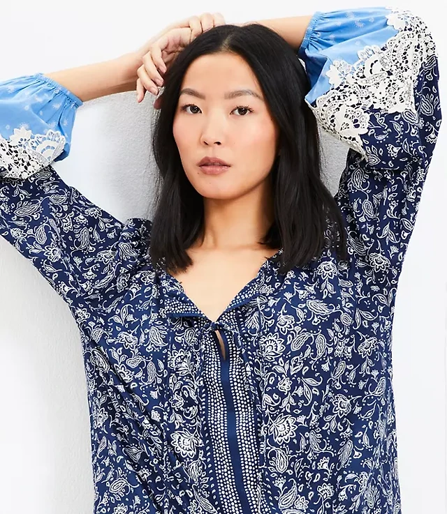 Garden Tie Neck Mixed Media Blouse