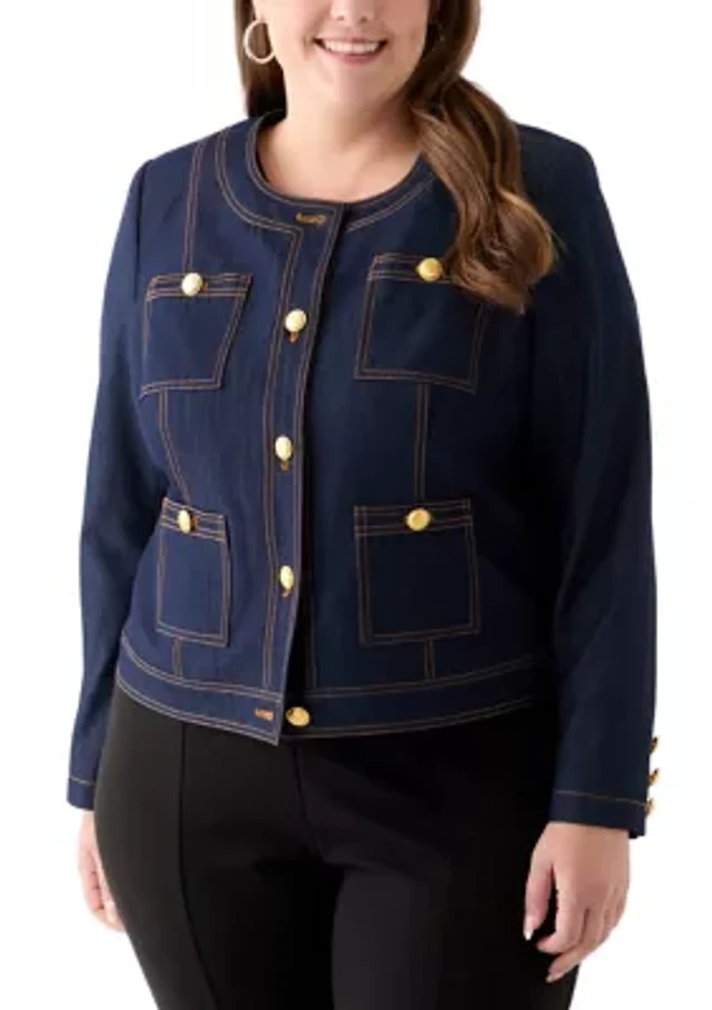 Plus Split Neck A-Line Denim Dress