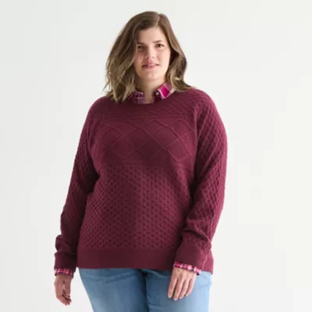 a.n.a Plus Womens Crew Neck Long Sleeve Pullover Sweater